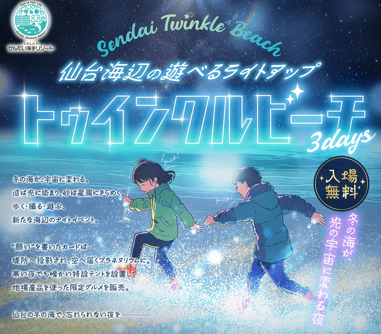 「寒い」より「楽しい」が勝つ! 自分の足跡が星くずに変わる仙台の砂浜「トゥインクルビーチ」