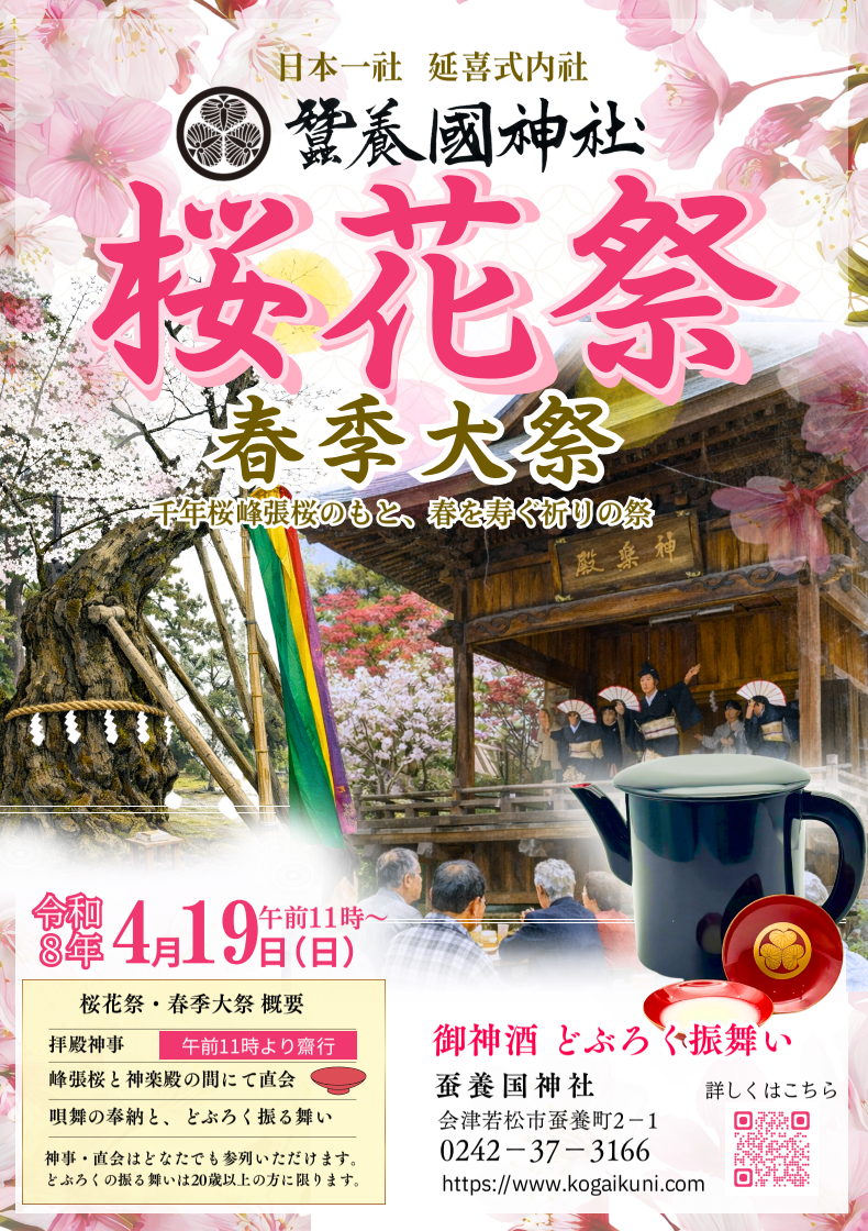 平安の頃から、ここで春を待っていた。会津若松・蚕養国神社で千年桜と伝統のどぶろくを味わう「桜花祭・春季大祭」