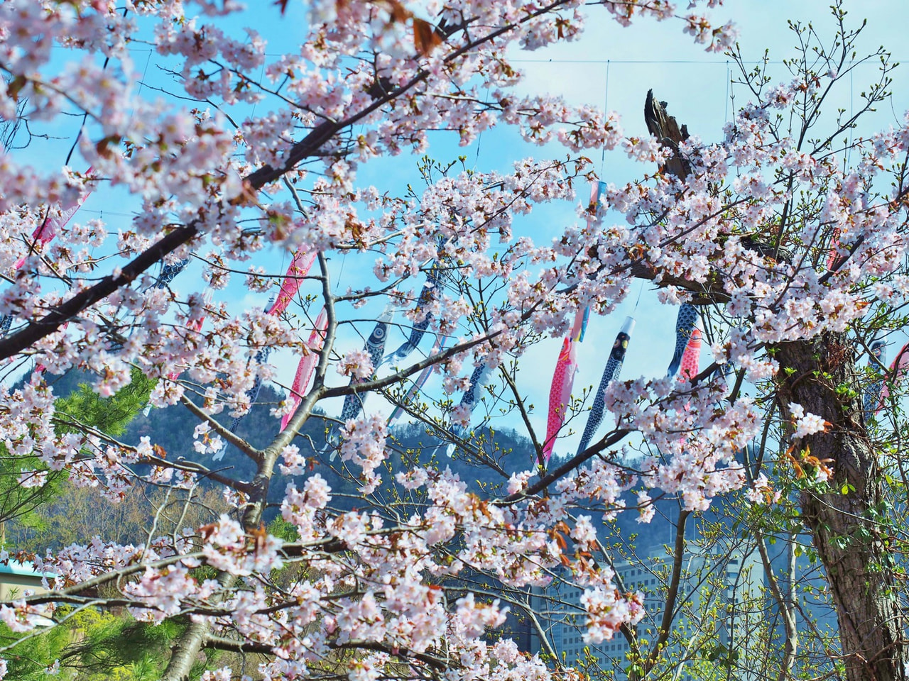 足湯に浸かって「残雪」「桜」「鯉のぼり」! 札幌市・定山渓温泉の欲張りすぎな春「渓流鯉のぼり」