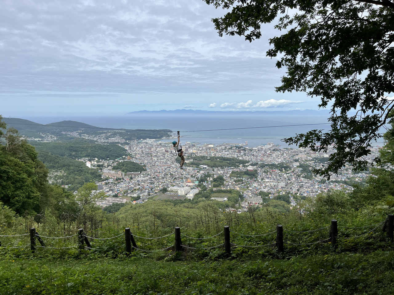 絶景を楽しむ方法はもう一つあります。それがジップライン! 「ジップラインって山の中などに設置されることが多いので、だいたい景色は緑ですよね。でもここのジップラインは市街地の風景を見ながら滑り降りることができるんです」と仲西さん。実は私、一度もジップラインを体験したことがなかったので、挑戦することにしました。