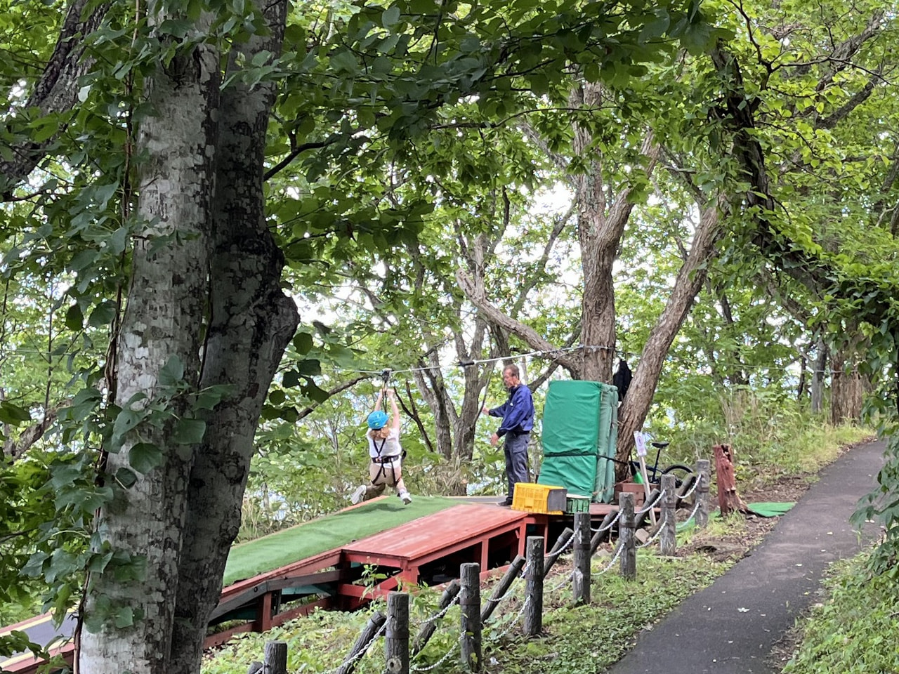ハーネスを着けてくれたスタッフさんに「今日は何人くらい体験しましたか?」と尋ねたところ、「20人くらいですかね」という返事が。平日なのに20人ってけっこう多い!