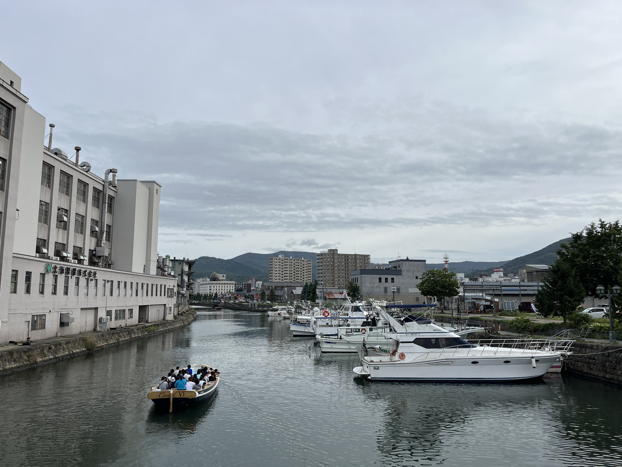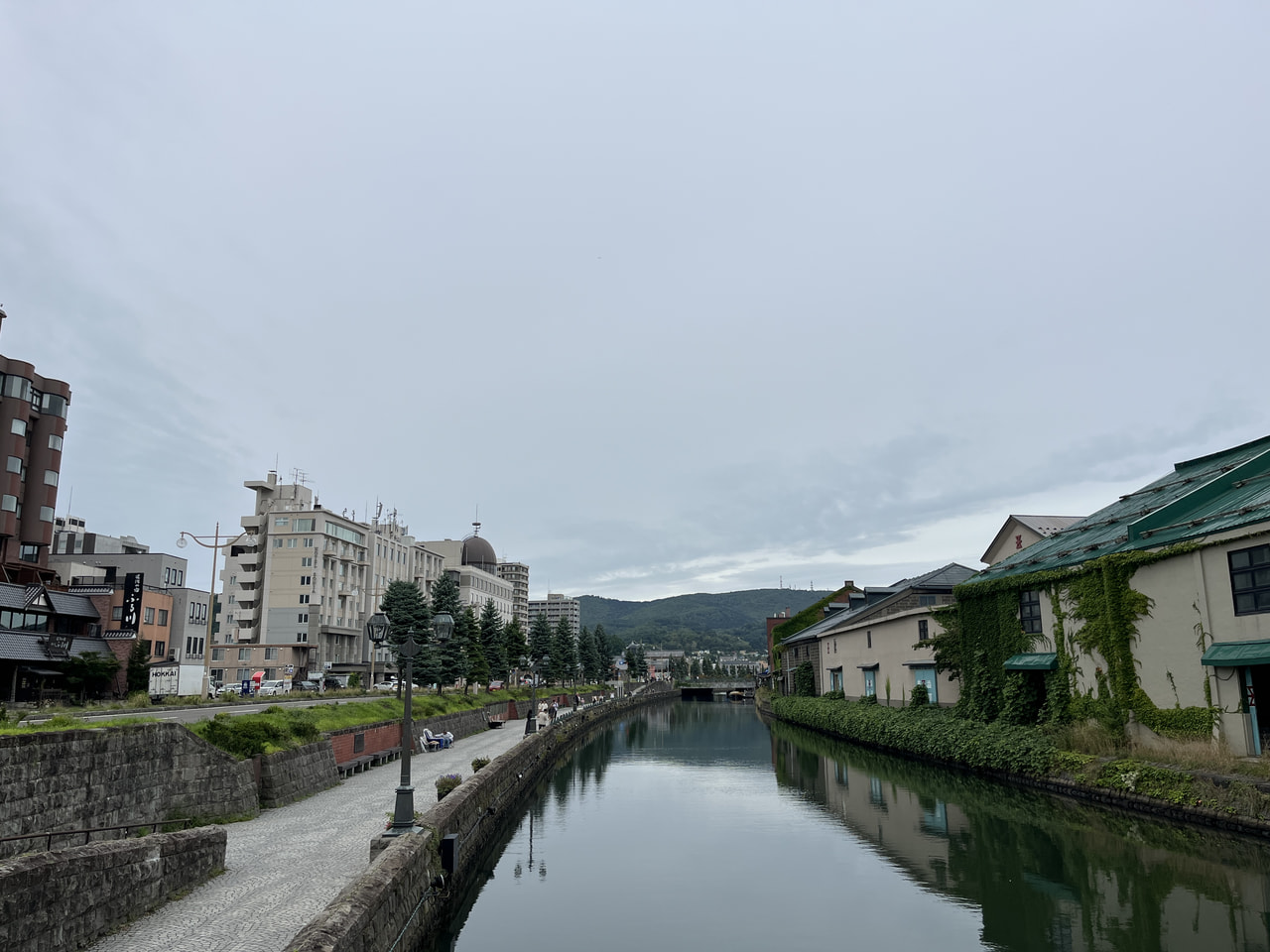 よくテレビや雑誌などで紹介されるのは小樽運河の南側。南側はもとの運河を20m埋めて散策路になっているのですが、実は北側に行くと当時の運河幅がそのまま残されているんです。実際に見てみると、これが目で見てわかるほど幅が違う!