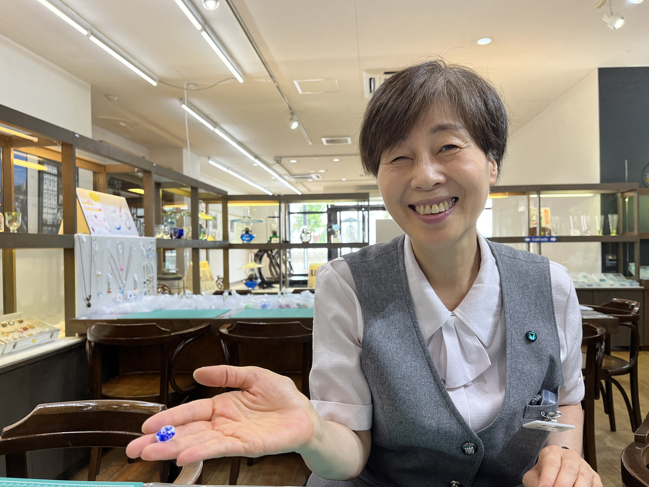 せっかくだから小樽らしいことをしたいなと思い、この商店街の中だけでも5つの店舗を持つ「北一硝子」でとんぼ玉アレンジメント体験に挑戦することにしました。私はキラキラしたものが好きなのですが、とんぼ玉に触ったことがなくて興味があったんですよね。