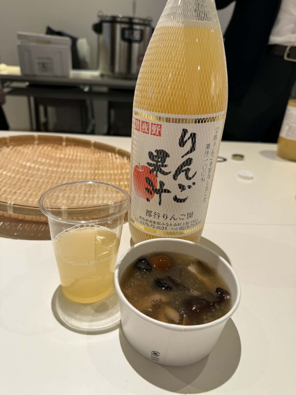 この味覚展は、農産物・特産品として、地元みなかみ町産のりんご(数量限定・特価。例:ぐんま名月などの品種も販売予定)、きのこ(椎茸やきのこセット)、きのこ汁など、旬の農産物、地元銘菓や果実加工品などの特産品を販売。情報交換会では、その一部を一足先に味わうことができた。