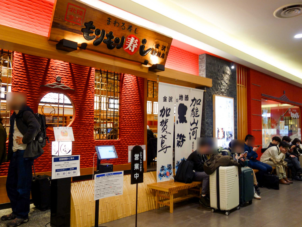金沢で絶対食べたかった2番目のグルメは回転寿司です。東京に進出している「金沢まいもん寿司」と「もりもり寿し」の2店で迷いましたが、JR金沢駅兼六園口から出てすぐの商業施設「金沢フォーラス」6階にある「もりもり寿し」に決めました。