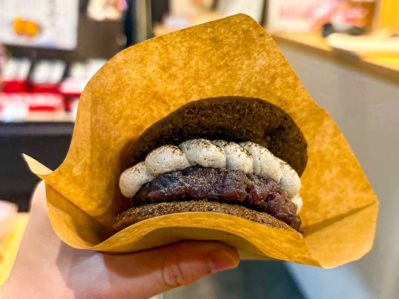 ここはもちろん石川県発祥の「加賀棒茶」を使ったどら焼きを選びます。生地とクリームに加賀棒茶が使われているようで、ほうじ茶の香りがする、すっきりとした甘さでした。今回知ったのですが、加賀棒茶は「茎」のみを焙煎するのが普通のほうじ茶との違いだそうです。