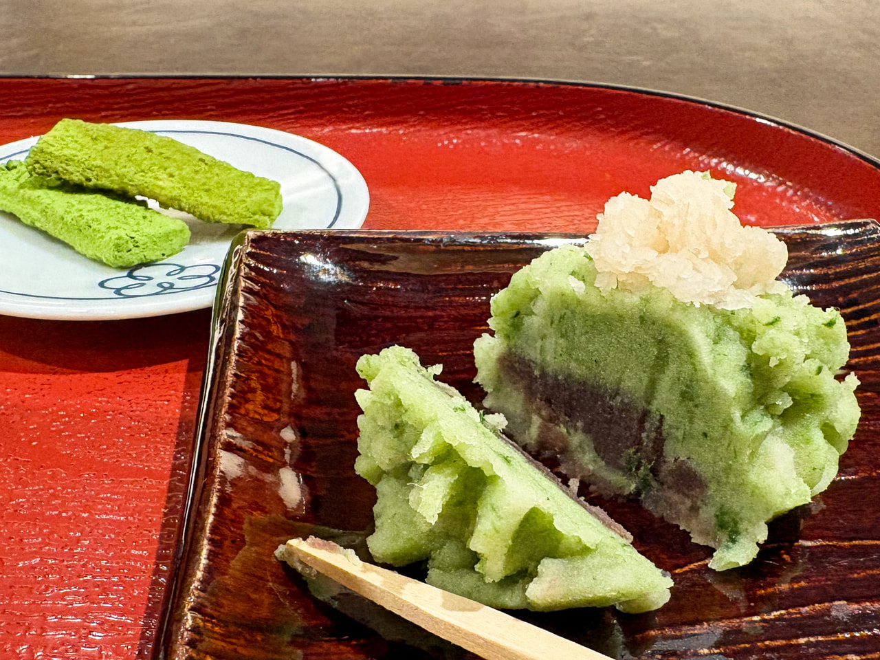 そう、こういうのが食べたかったんです! 茶屋街で和菓子、幸せ。そして度肝を抜かれたのが、抹茶の自家製ラスク。めちゃめちゃおいしかった!