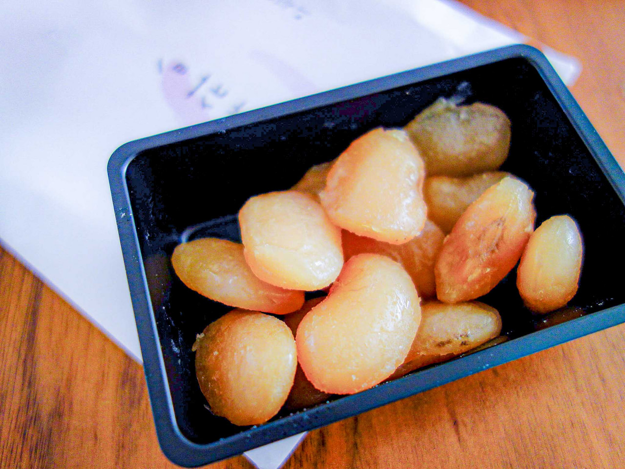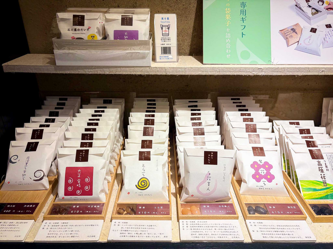 さて、あとはお土産を買うだけ。6番目と7番目の美味しいものはお土産に買って帰ります。今回のお土産は、どちらも地元の方に教えてもらったもの。1つは、桜桃のお隣にある「甘納豆かわむら」さんの甘納豆。ショップ以外ではあまり売っていないようなので思わずたくさん購入してしまいました。食べたことのないおいしさで、もっと買えばよかった。