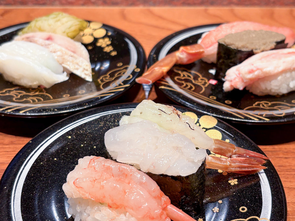 えびが大好きなので、「もりもり三点盛」と「北陸えび三点盛」を注文。ぼたんえび、生甘えび、富山産白えび、生ガスエビと、えびを4種類も食べてしまいました。特に印象に残っているのは、ねっとりとした食感の富山産白えび。生ガスエビも初めてでした。