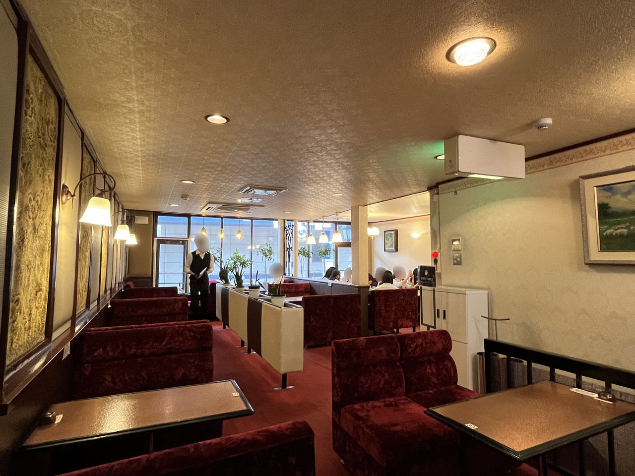 テイクアウトもいいですが、せっかくなら喫茶の利用がおすすめ。布張りのソファーなどがあって、レトロな設えがいい感じなんです。