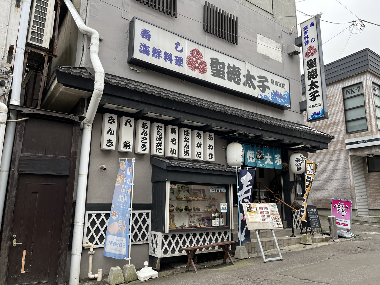 小樽市グルメといえば新鮮な魚介を使ったお寿司! あちこちにお寿司屋さんがあってどのお店にするか迷ってしまうところですが、今回は舌が肥えている地元の人も通うお店に行きたい!ということで、「聖徳太子 飛鳥店」に向かいました。小樽駅から10分程度歩いた、スナックや飲み屋が建ち並ぶエリアの一角にあります。