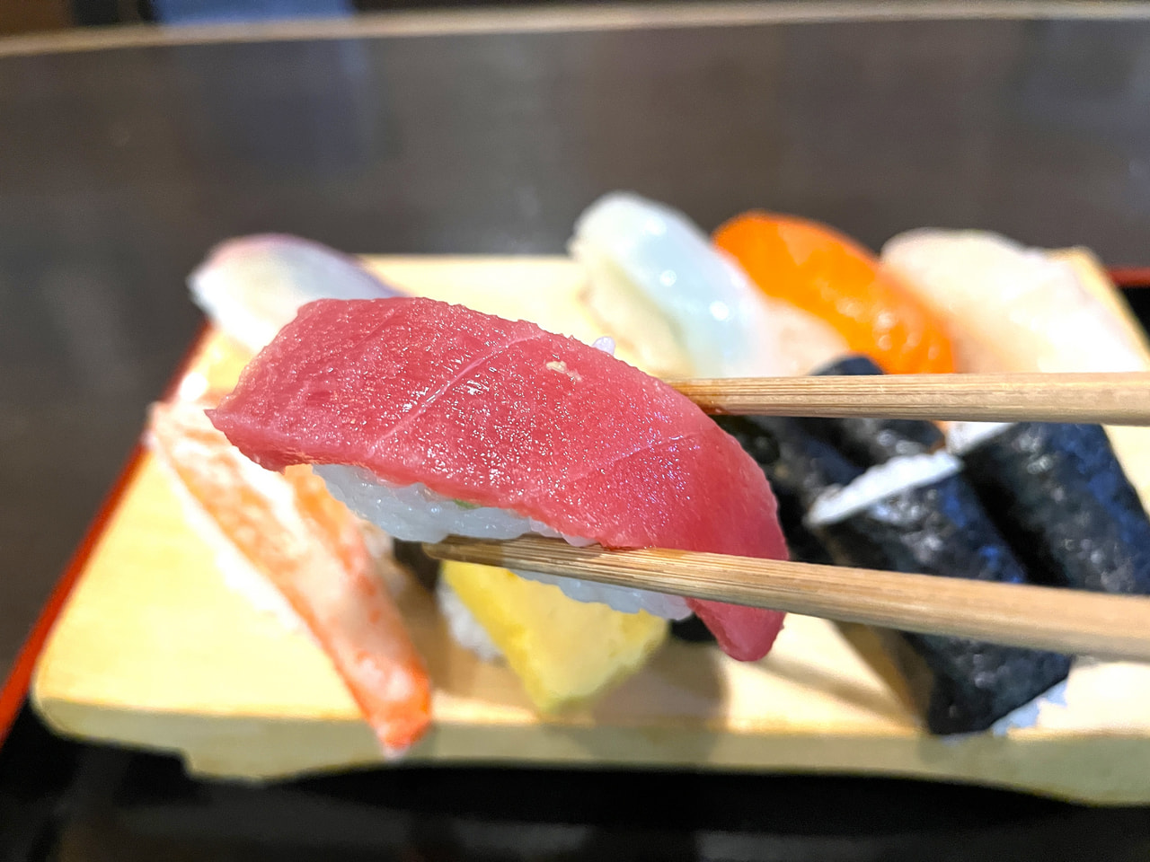 きれいなマグロに脂ののったサーモン、繊維を感じないほど口当たりやわらかなホタテ…それらが硬めに炊かれたシャリと合わさって、口の中でほどけます。もう何個でも食べられちゃいそう! これで1,500円ってマジ!?