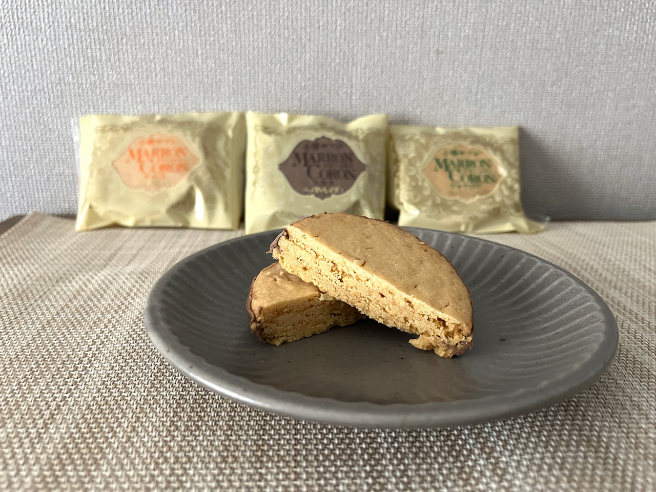 そんなあまとうの看板スイーツが1960年に誕生した「マロンコロン」。3枚重ねのサブレにチョコレートがコーティングされていて、サクサク、ザクザクとした食感がやみつきになります。マロンコロンを箱で購入していくビジネスマンの方もいて、手土産などにも使われているようです。