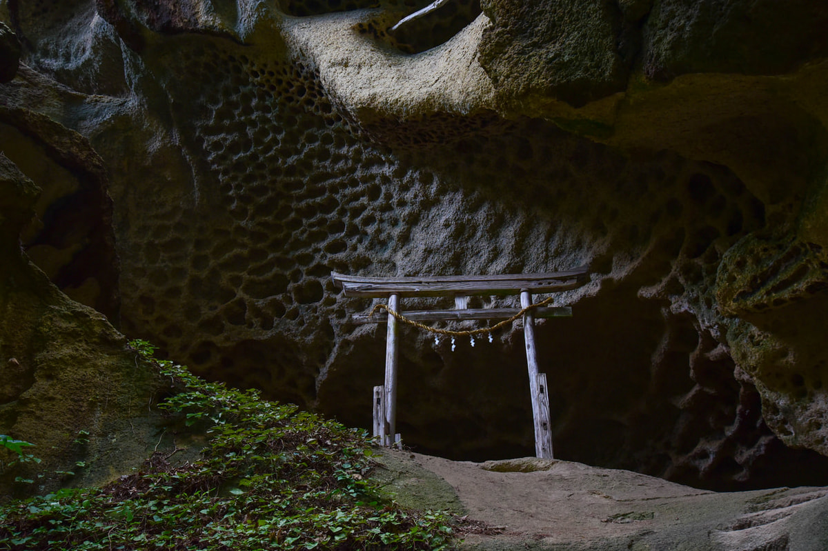 「宝珠山 立石寺」のさらに奥に位置し、“山寺”のルーツともされる千手院地区にある「垂水霊境」。“もう一つの山寺”とも呼ばれる峯の浦は、円仁が山寺の構想を練っていたとされる山の中にあり、修験道の修行場として古くから信仰されてきた場所ですが、垂水霊境はその一番奥地にあります。巨大な白い岩壁に蜂の巣状の穴が連なった独特な地形が特徴で、不動明王を祀る窟や小さな祠、鳥居などが点在。自然の中に突如現れる異様とも感じられる空間で、あたり一帯に荘厳かつ神秘的な雰囲気が漂うスピリチュアルスポットです。垂水霊境のほか、峯の浦の烏帽子岩や千手院観音堂などを巡る所要時間約3時間のガイド付きハイキングツアーも人気(体験代金・中学生以上7000円)。