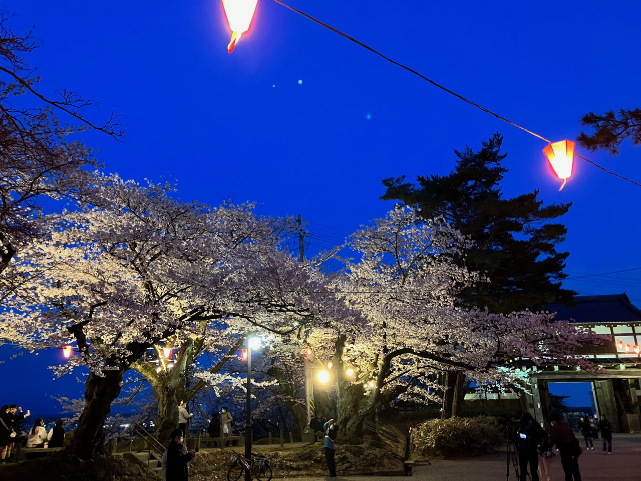 JR秋田駅から徒歩10分の秋田市中心部にある「千秋公園」は、「日本さくら名所100選」にも選ばれている、市内一のお花見スポットとして知られています。佐竹氏の居城だった久保田城跡に整備された公園内には、池や遊歩道、散策路、歴史的建造物の櫓や門などが点在し、散策しながら自然と歴史を感じられるのが魅力。園内ではソメイヨシノや枝垂れ桜、八重桜、オオムラザクラ、オオシマザクラ、ジンダイアケボノなど、種類も豊富な桜約630本が見られ、ようやく訪れた春を祝う市民の憩いの場となっています。桜が見頃となる4月中旬~下旬には、夜桜ライトアップや大道芸が行われるほか、70店前後の露店も登場する「千秋公園桜まつり」も開催予定。ライトアップが行われる日没後に広がる昼とは違った幻想的な雰囲気、櫓の上から園内360度を見渡せる久保田城御隅櫓からの絶景なども見どころです。