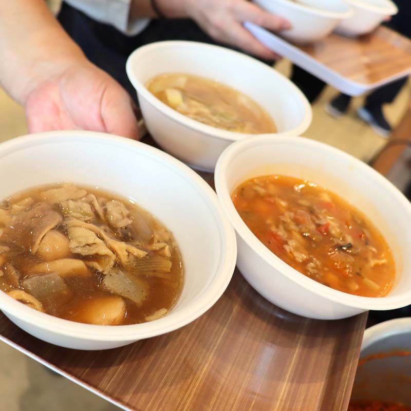 仙台風、山形風芋煮のほか、一風変わったイタリア風芋煮の3種類を用意。すべてアクアイグニス仙台に店を構えるレストランやマルシェがオリジナルのレシピを考案し腕を振るったメニュー。