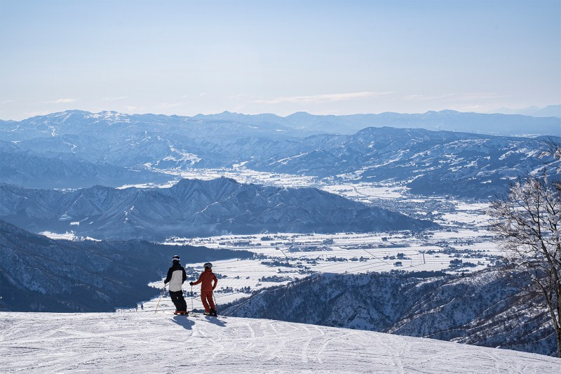 六日町八海山スキー場は標高1147mの山頂までロープウェーにて約7分で到達。澄み切った晴れた朝の山頂からは、日本海を見渡せる大パノラマが広がり、魚沼盆地を一望しながらの滑走を楽しめる。なお、今シーズンの営業は2025年12月20日~2026年3月29日の予定。