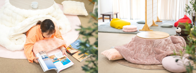雪景色を眺めながら温まるひとときを過ごせる「おこもりスペース」を用意され、こたつを設置た空間で読書やおしゃべりを楽しめる。