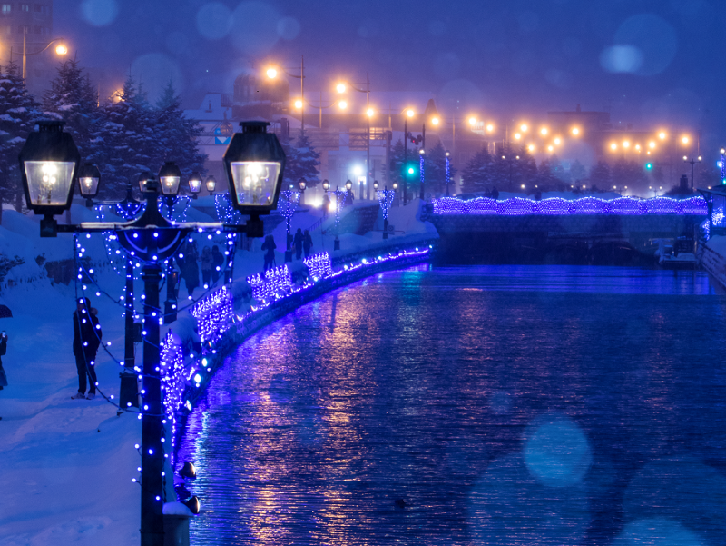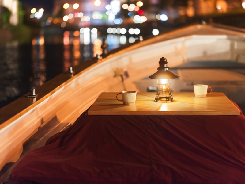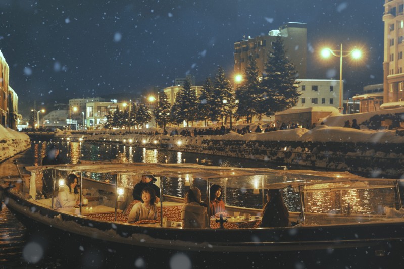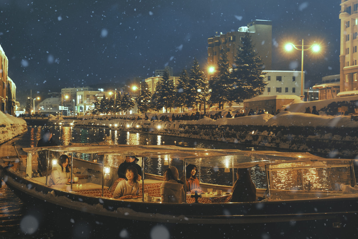 通常ベンチ席で運行している運河クルージングとは異なり、こたつを設えた専用の船を宿泊者限定で貸し切りクルーズで運行。寒さが厳しい小樽の冬でも約40分間の乗船中、船上で温かく過ごしながら雪に包まれた歴史的建造物が並ぶ小樽の街並みを優雅に眺めることができる。