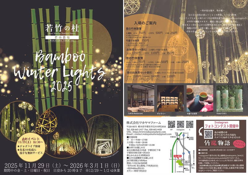 宇都宮市にある「若竹の杜 若山農場」にて11月29日より、竹林ライトアップ「Bamboo Winter Lights 2025」が今年も開催される。