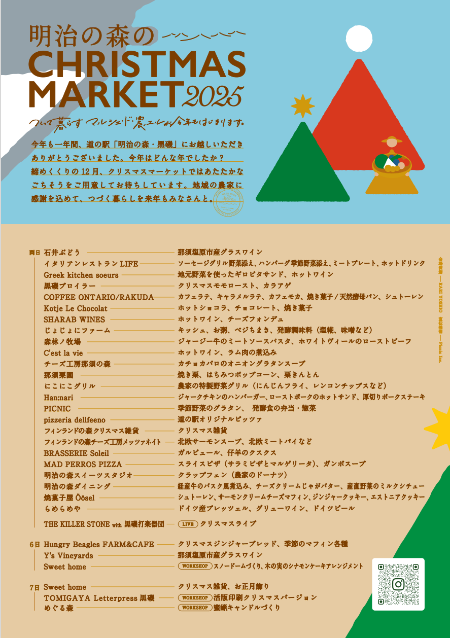 昨年、第1回目が行われた「明治の森のクリスマスマーケット」が今年も12月6日(土)・7日(日)の2日間、那須高原の「道の駅 明治の森・黒磯」で開催されます!