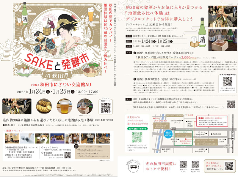 秋田市にぎわい交流館にて2026年1月24日・25日、「SAKEと発酵市in秋田市」が開催される。