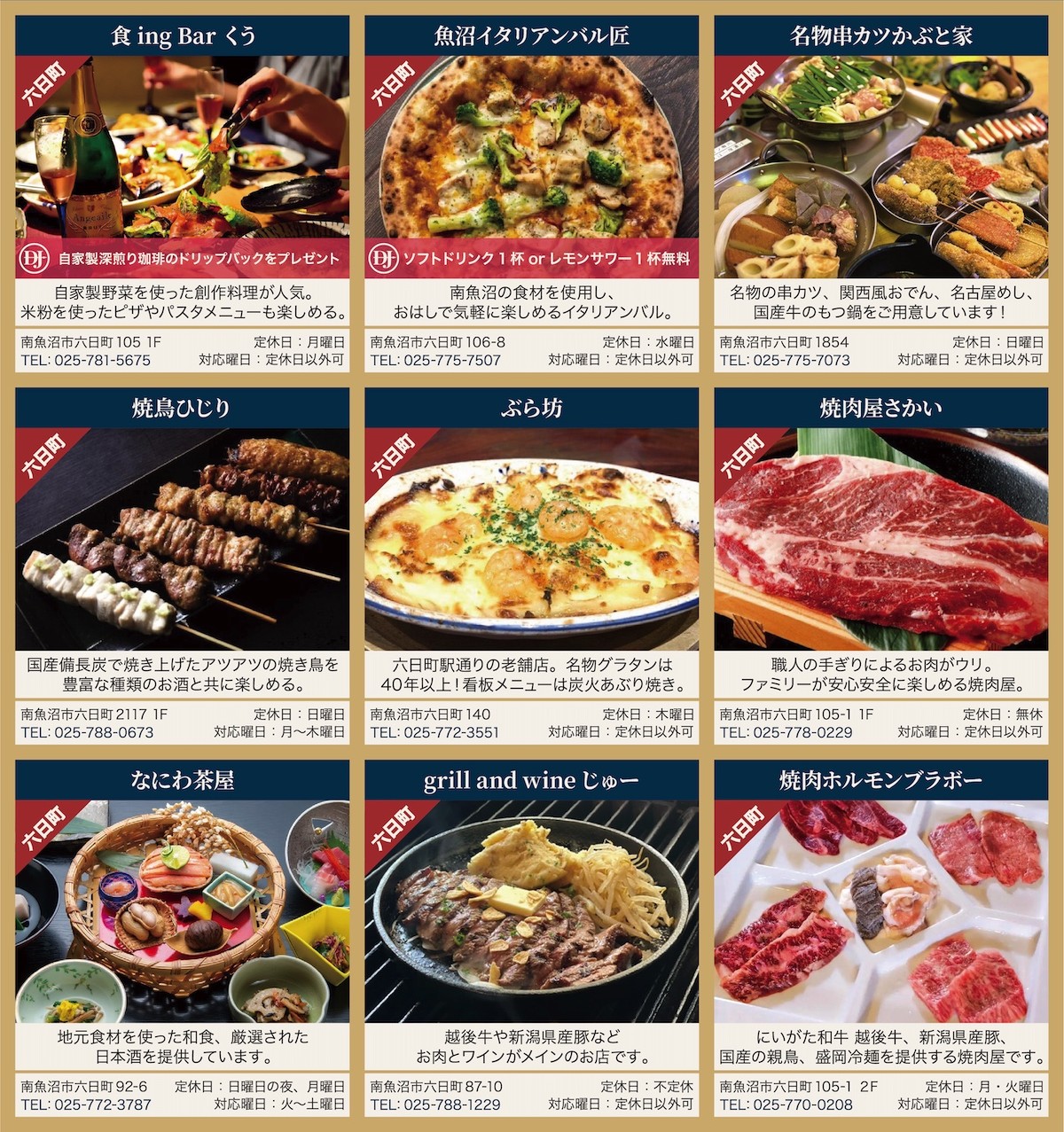越後湯沢駅から約20分の距離にある南魚沼エリアで、雪国ならではの「食」と「夜の風景」を堪能できるキャンペーンで、南魚沼屈指の飲食店19店舗が参加。イタリアンバルから、和食堂、洋食ダイニングなど幅広いグルメが揃っています。