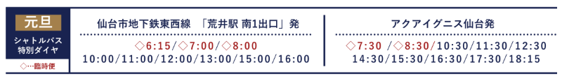 なお、アクアイグニス仙台は仙台市地下鉄東西線荒井駅から直通。第1便は6時15分発なので初日の出に間に合う時間に訪れることができる。