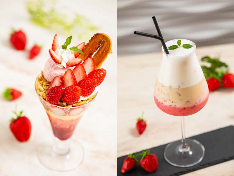 このほか、館内3つの店舗では期間中、11種類のストロベリーメニューを提供。各店舗にてパンやケーキ、デザート、カクテルなどバラエティ豊かなメニューがイートイン/テイクアウトで用意。