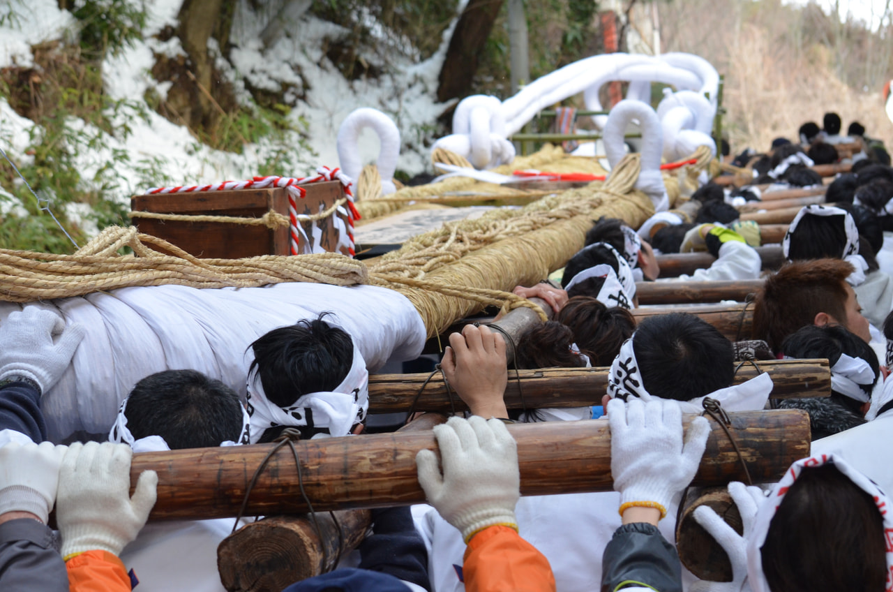 福島では有名な冬の風物詩ですが、白い法被に鉢巻姿と古式ゆかしい装束で行われているので、五穀豊穣や家内安全など、日本のお祭りらしいご利益があるのは容易に想像できます。ですが実はこのお祭り、「3年お参りを続けると恋が叶う」と言われる縁結びのご利益もあるらしく、そこがなんともかわいい! しかもお写真を拝見する限り、担ぎ手さんは体格のいい旦那衆が中心のようですので、この方たちの恋がみんな実っているのかなぁ、と思うとなんだかホッコリしちゃいますね(笑)。