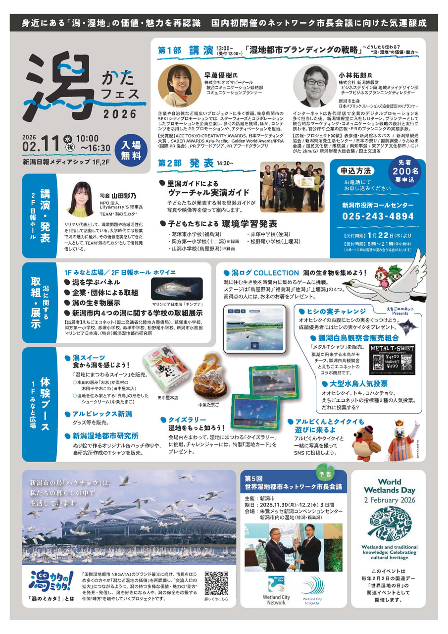 新潟市は2月11日、「潟フェス2026」を新潟日報メディアシップで開催する。