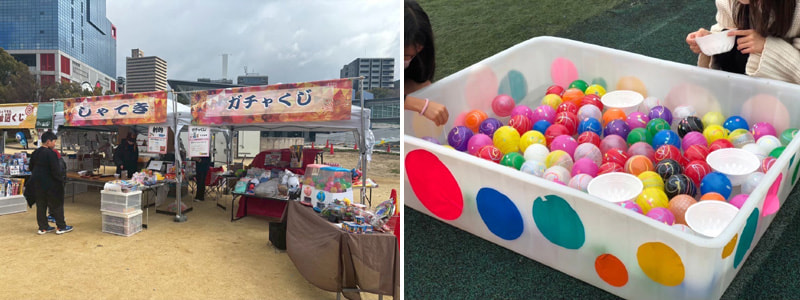 職業体験だけでなく縁日やふわふわ遊具といった子どもたちが思いきり遊べるブースも用意。焼きそばやポテト、唐揚げといった定番はもちろん、餃子や手巻き寿司、おでんやもつ煮などのフード店舗も登場し、家族で楽しめるイベントとなっている。