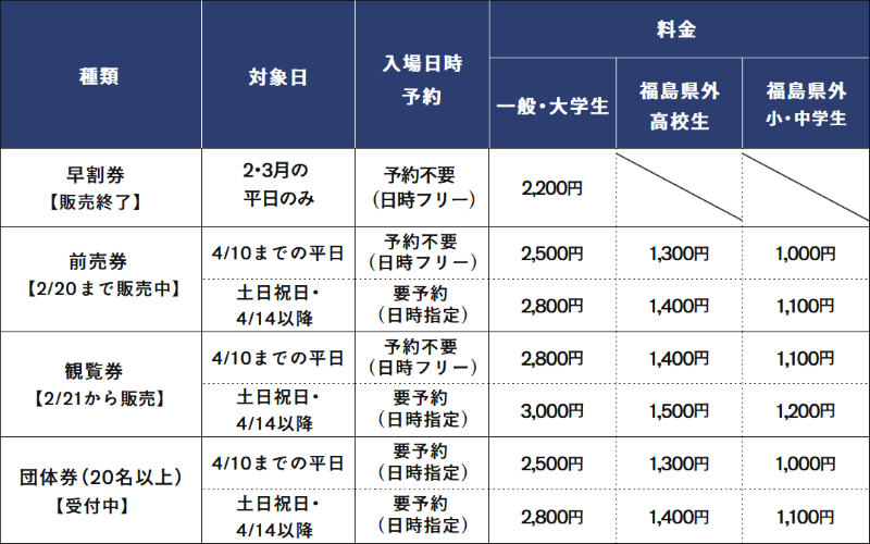※土日祝日及び4月14日以降は、土日祝日料金・日時指定予約制