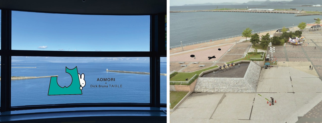 展望台にミッフィーのフォトスポットが登場し、青森の景色とともにその姿を見ることができます。ノベルティ―付きのオリジナルデザインの展望チケットも販売予定です。また隣接する青い海公園には、ミッフィーのお顔が登場します。この他オリジナルグッズの販売や、バー「うみとひかり」でのコラボの実施が予定されています。