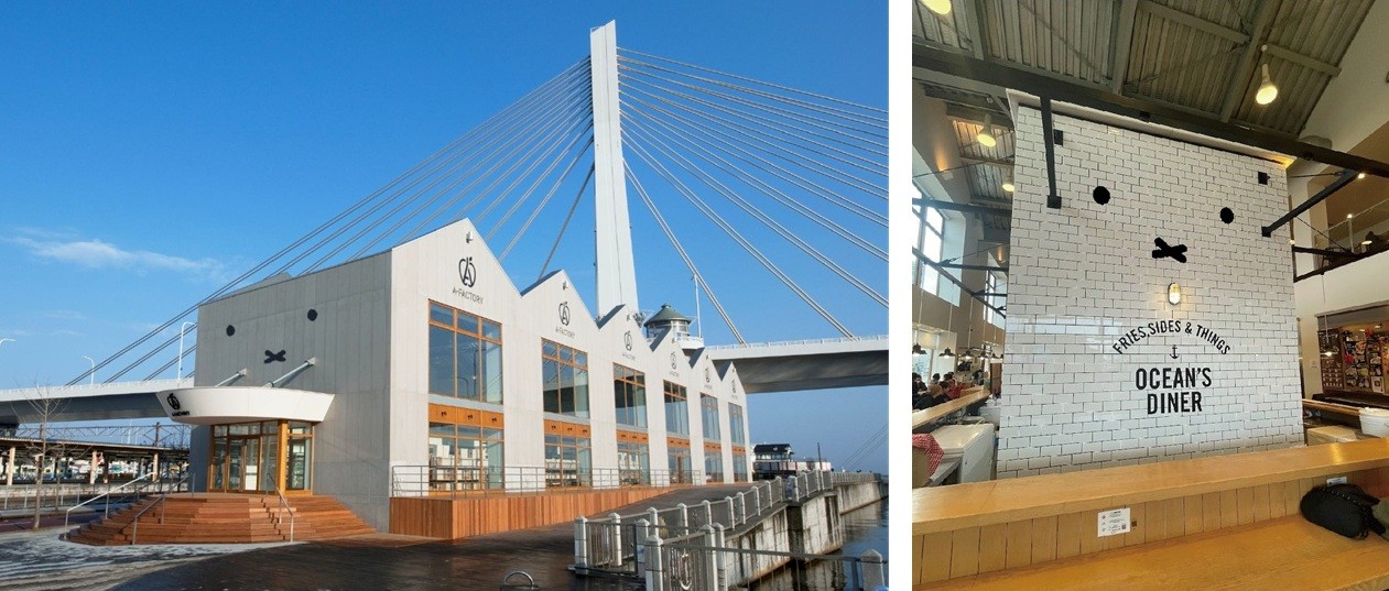 飲食・物販ショップやシードル工房から構成される複合施設A-FACTORYの外観と施設内店舗「OCEAN’S DINER」の店頭にミッフィーのお顔が登場します。同店ではコラボメニューの販売が予定されています。また、A-FACTORY内ではオリジナルグッズも販売予定です。