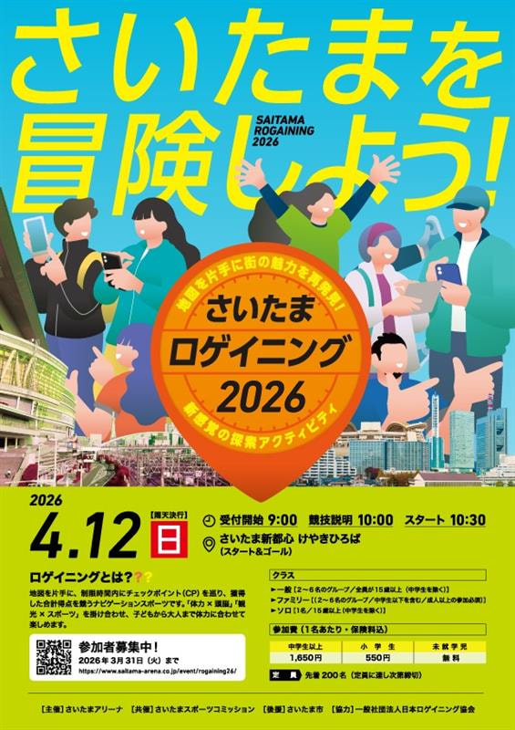 2026年4月12日(日)にさいたま市内を舞台にした「さいたまロゲイニング2026」が開催されます。