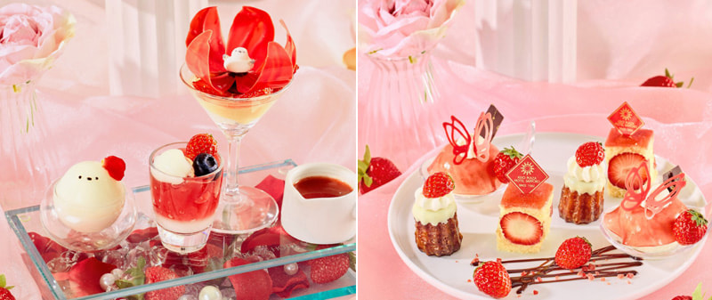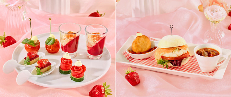 「シマエナガランチ春」は、『Very Berry SPRING!ときめきが止まらない、ベリーの魔法にかかる午後。』をテーマに、宝石のように艶やかな旬の苺、ベリーをたっぷり散りばめた赤がメインカラーの華やかなランチとなっている。