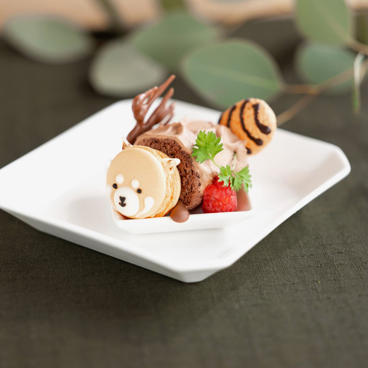 スイーツは全11種類で、レッサーパンダをモチーフにしたマカロンや、ライオンをイメージしたオレンジティラミス、キリン柄のレモンマドレーヌ、ユキヒョウを表現したメロンショートカップケーキ、ぞう型のクッキーなどを用意する。