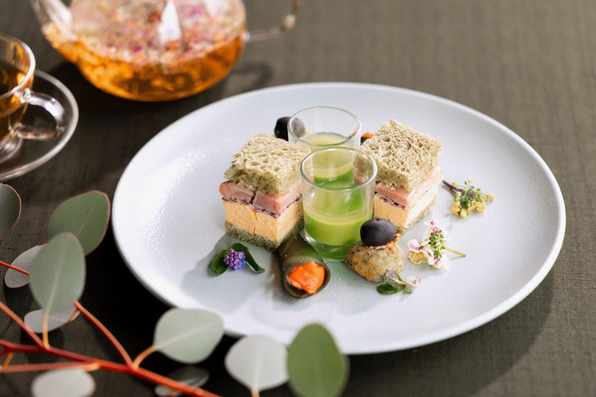 セイボリーはミニサンドウィッチやクロケットを盛り合わせたプレートに加え、温製または冷製の一品を選択できる。ドリンクは、およそ15種類をフリーフローで提供する。利用時間は120分。