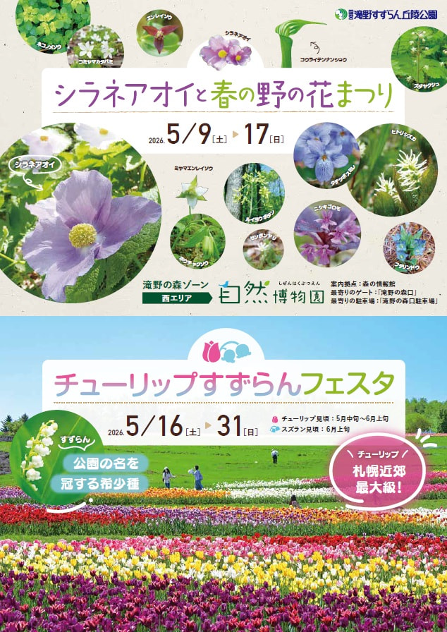札幌市の国営滝野すずらん丘陵公園では、5月9日~17日の期間、「シラネアオイと春の野の花まつり」を開催する。