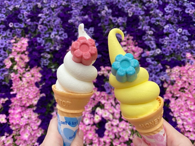また、山喫茶HOLICHOLIC ではカフェメニューとして見た目も華やかな花のトッピングを施した「大人気スイセンソフト」を提供。テラス席で絶景を眺めながら、SNS映え間違いないの見た目と地元産の素材を活かした味を楽しめる。