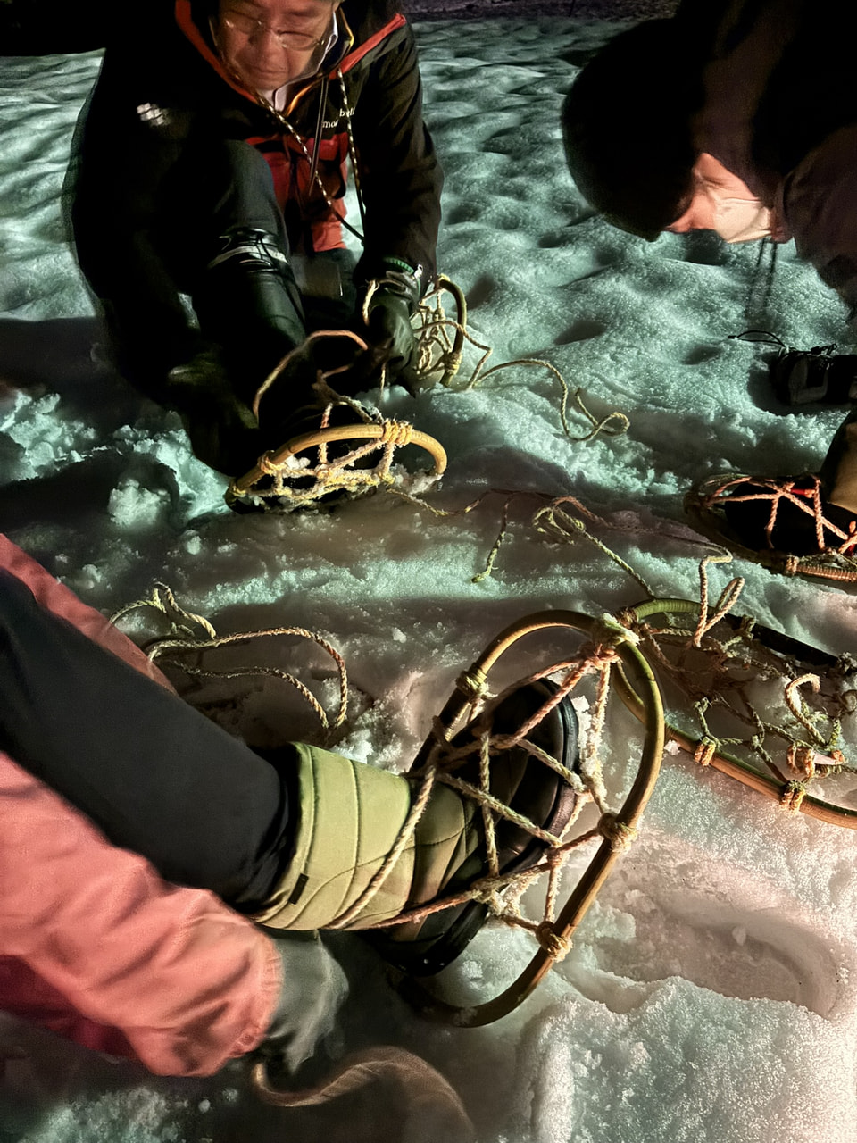 手作りランタンで、ガイドと夜の雪山散策