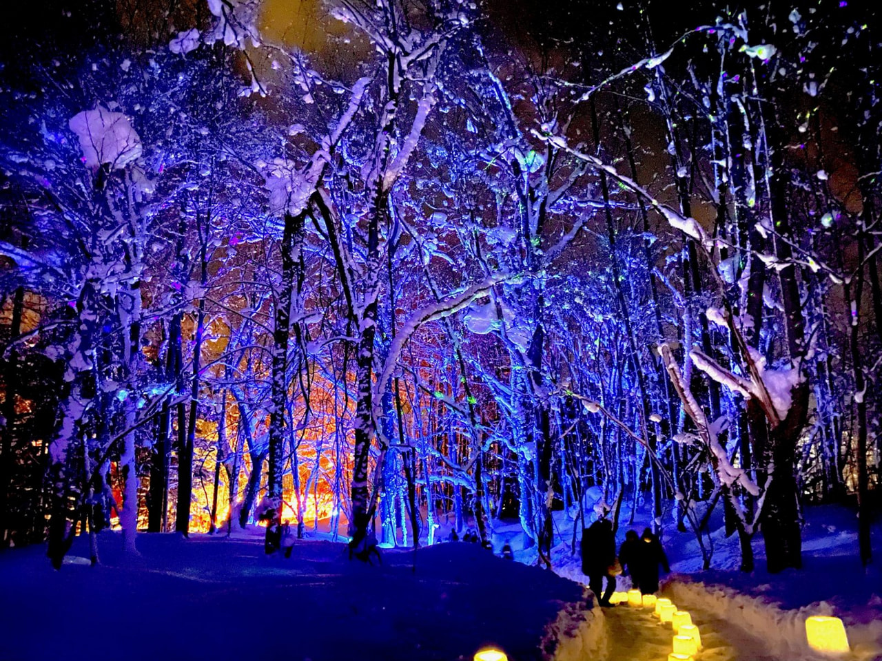 雪に覆われた木々が神秘的に光に照らされる光景は、まるで別世界に迷い込んだかのよう。凛とした冬の冷気の中で、自然とデジタルが共創する圧倒的な没入感を体験できるはず。